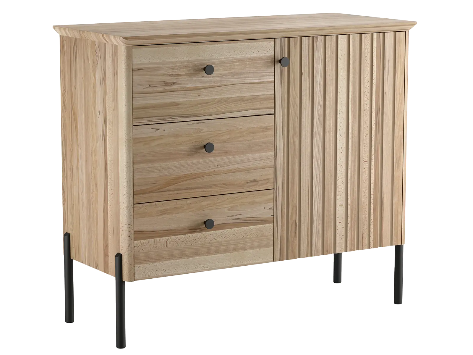 Vezi descrierea produsuluiComoda Lamelo, cu lățimea de 93 cm, este o combinație elegantă de design atemporal și măiestrie solidă. Fabricată în întregime din lemn masiv de fag, este perfectă pentru un living, dormitor sau sufragerie, oferind un aspect estetic plăcut și un spațiu practic de depozitare.