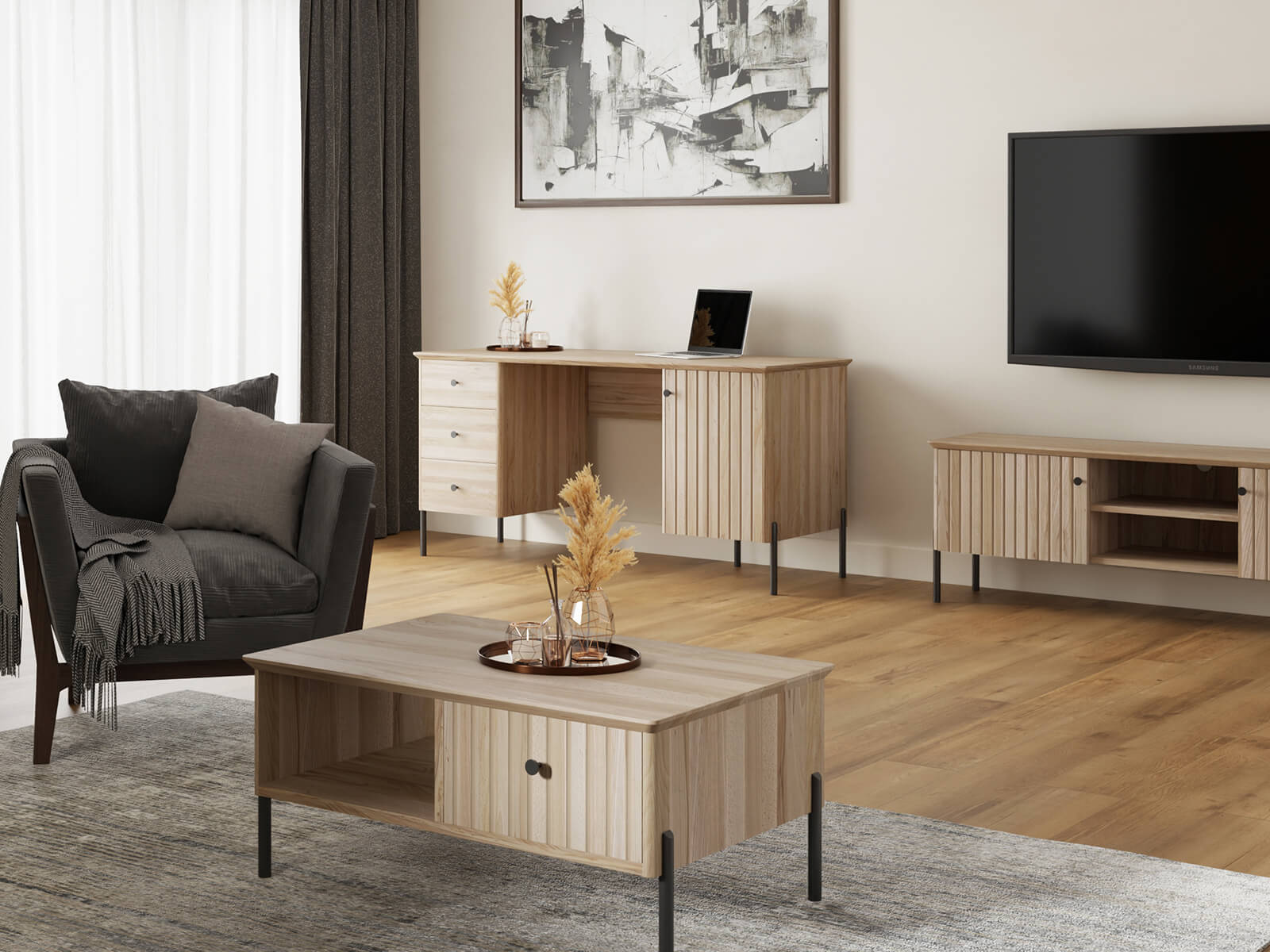 Designul colecției Lamelo se remarcă prin proporțiile echilibrate și liniile curate, care asigură o armonie perfectă între estetică și funcționalitate. Mobilierul este conceput nu doar pentru a arăta bine, ci și pentru a oferi confort și utilitate în viața de zi cu zi. Fie că este vorba despre spații de living, dormitoare sau birouri, piesele din colecția Lamelo sunt o alegere inspirată pentru cei care apreciază calitatea, durabilitatea și stilul atemporal.