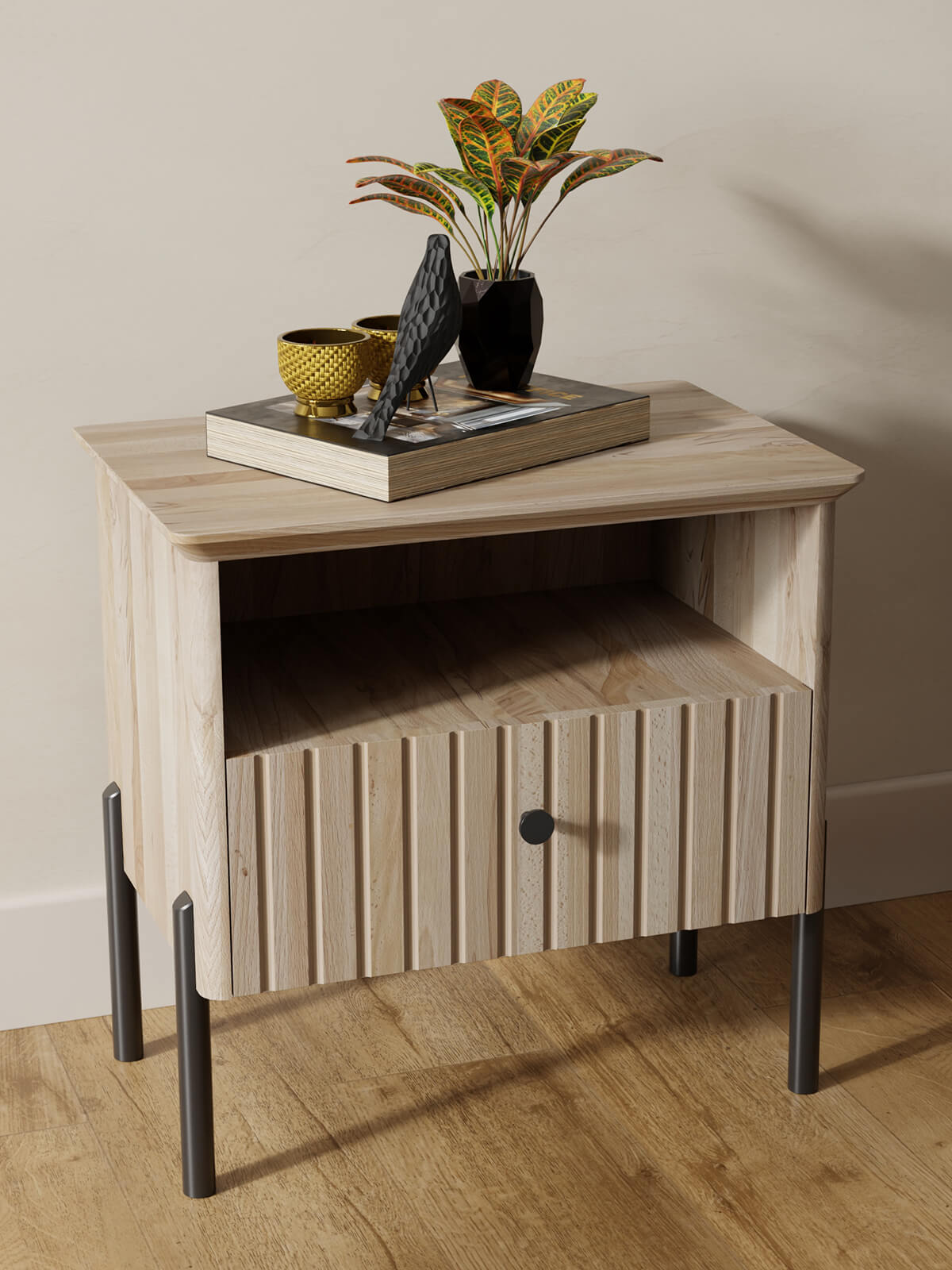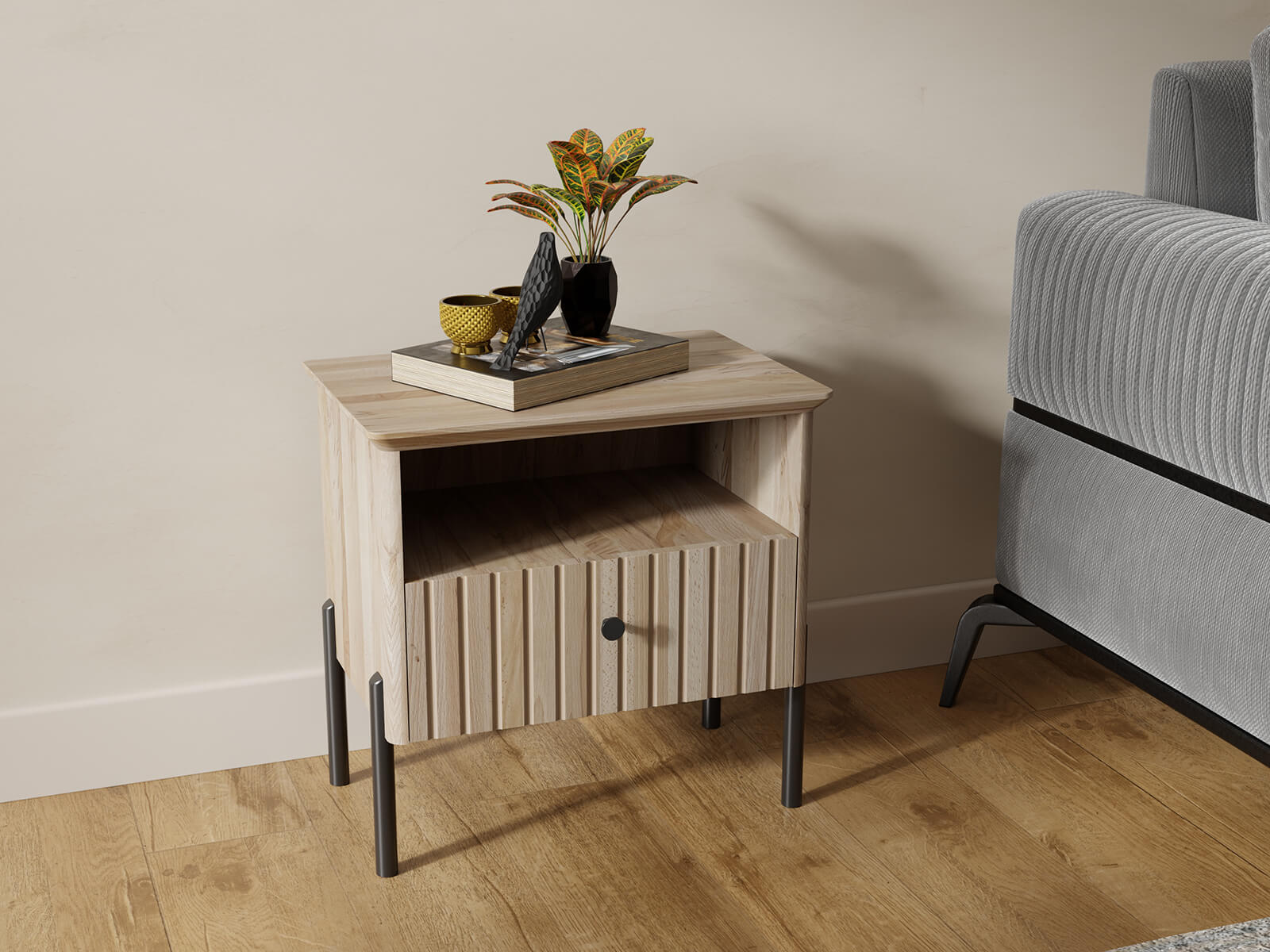 Noptiera din lemn de fag Lamelo, Fag Natural
