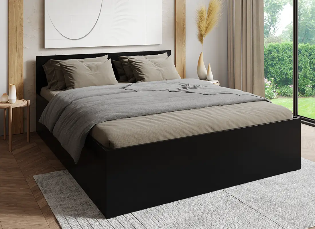 Vezi descrierea produsuluiPatul negru DM1 este o piesă de mobilier modernă și funcțională, realizată din MDF de înaltă calitate și caracterizată printr-un design simplu și minimalist. Nuanța închisă a lemnului adaugă eleganță și profunzime interiorului, adăugând un accent distinctiv ce se armonizează perfect cu multe stiluri de design interior. Construcția durabilă și tăblia confortabilă asigură confort, în timp ce designul universal face ca patul să fie ideal pentru dormitoare, camere de tineret sau camere de oaspeți. Este o soluție practică pentru cei care apreciază estetica și durabilitatea. În plus, dimensiunile compacte ale patului îl fac ideal pentru spații mici, fără a sacrifica funcționalitatea. Construcția stabilă și măiestria precisă garantează siguranța, chiar și în cazul utilizării intense. Suprafața naturală, asemănătoare lemnului, nu este doar plăcută din punct de vedere estetic, ci și ușor de întreținut, asigurând că piesa rămâne în stare excelentă pentru o lungă perioadă de timp. Patul DM1 combină eleganța clasică cu o abordare modernă a confortului și caracterului practic.