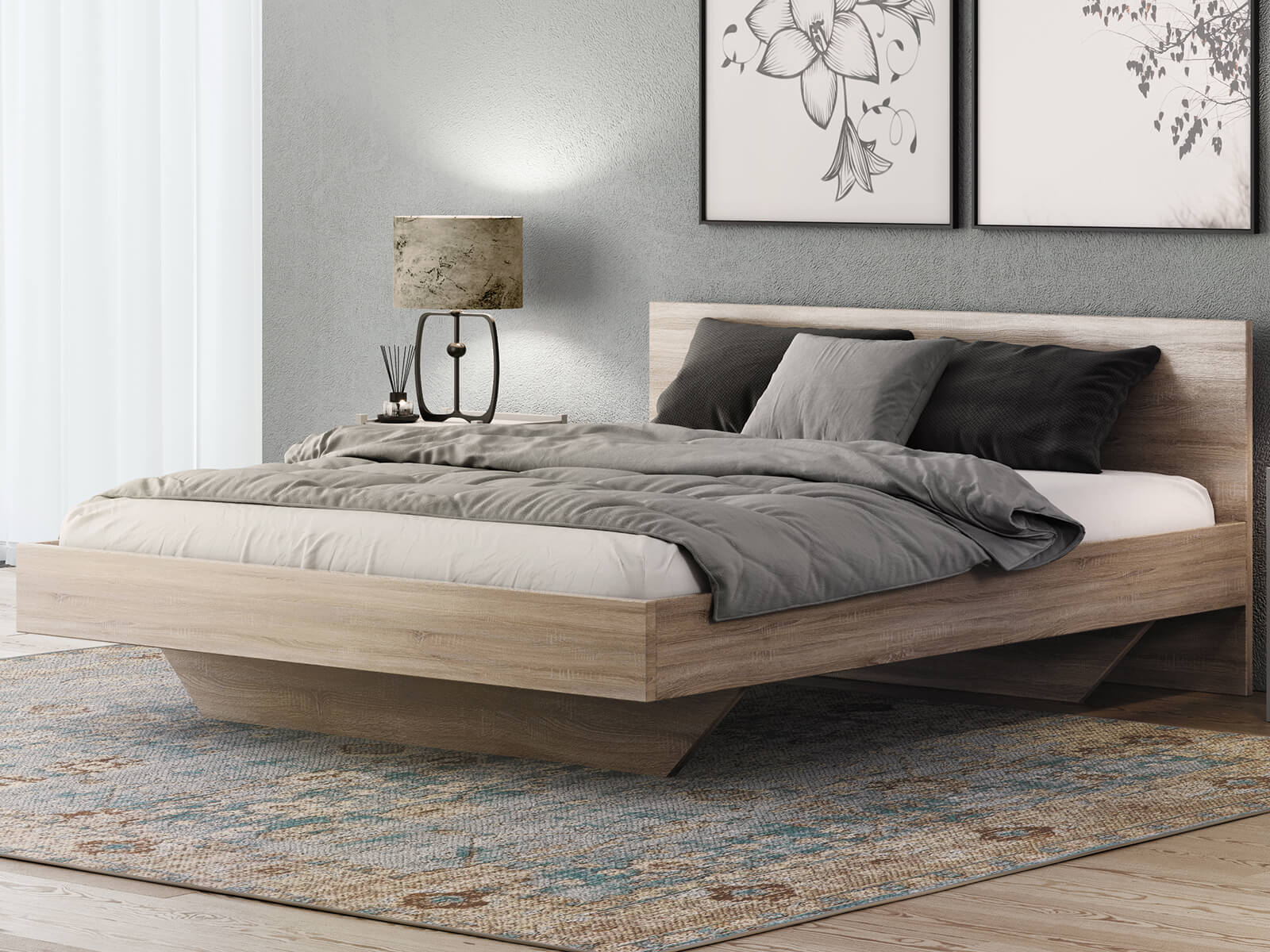 Pat de levitare 160x200 din placa de mobilier DM2 stejar sonoma