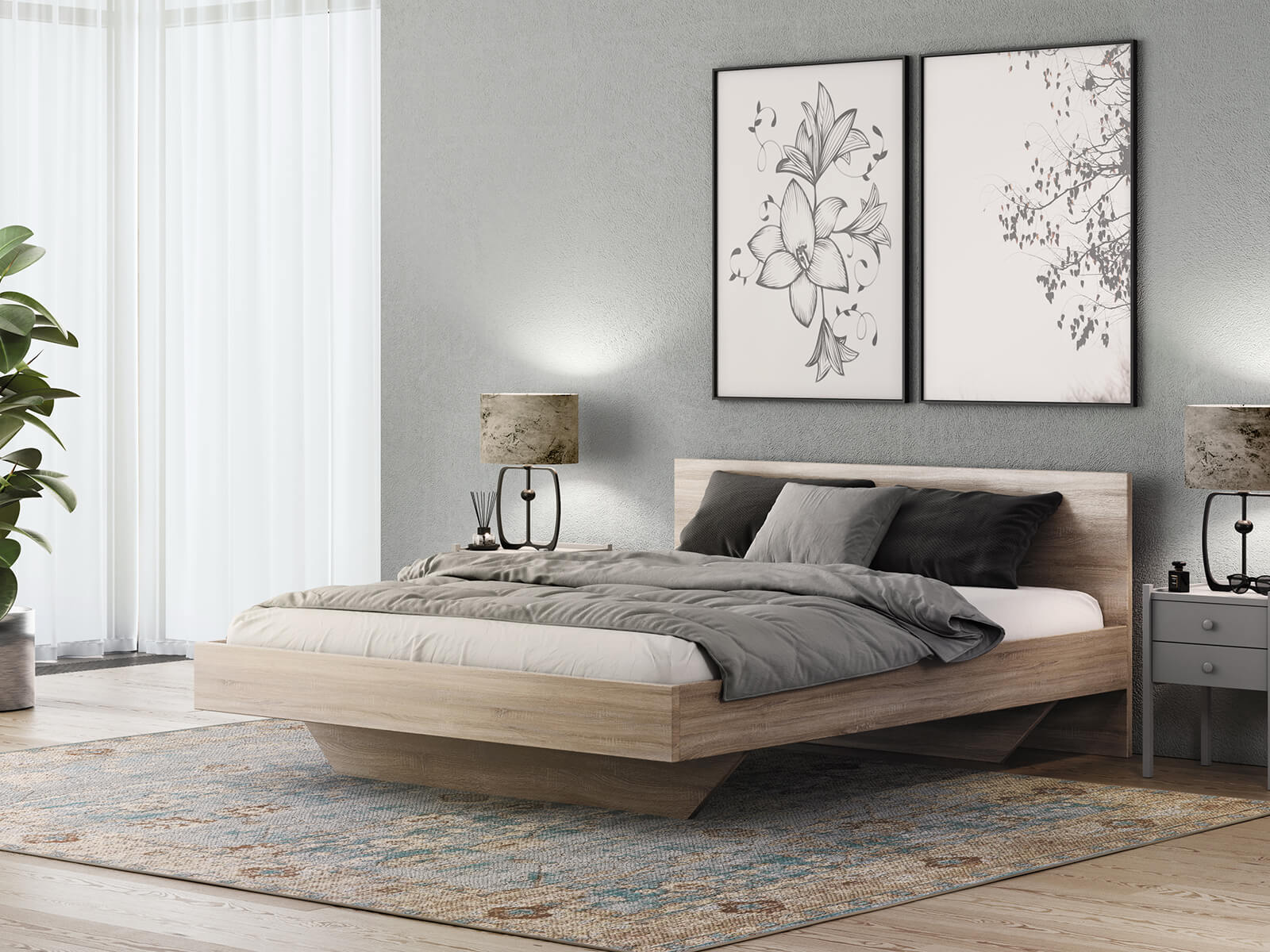 Eleganța este în detalii - Picioarele patului creează un efect de levitație și adaugă stil oricărei încăperi. Scândura de mobilier cu tăblie completă face din patul nostru DM2 o adevărată capodopera din toate punctele de vedere.