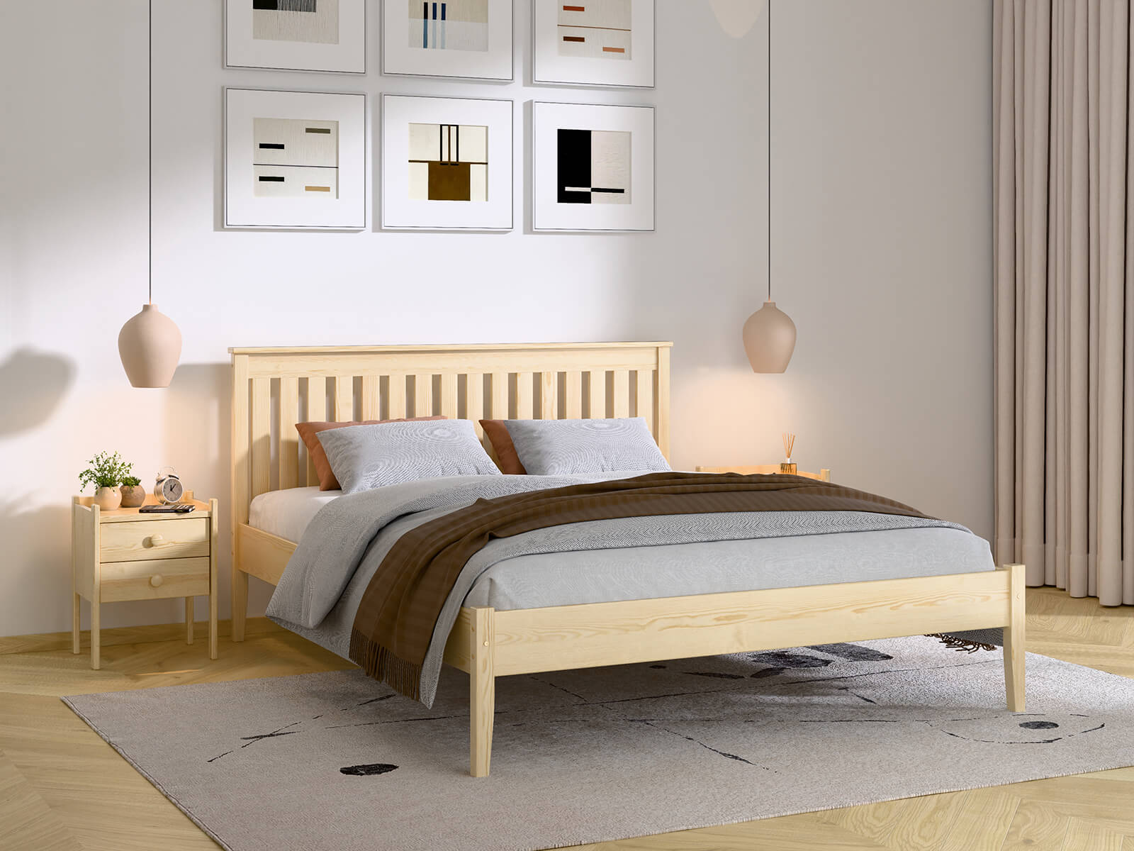 Tăblia distinctivă, cu șipci, conferă acestui pat elegant un caracter atemporal, completând perfect atât interioarele clasice, cât și pe cele moderne. Datorită materialului natural al lemnului de pin, patul Bilbao este piesa centrală perfectă pentru un dormitor în stil scandinav, minimalist sau rustic. Este alegerea perfectă pentru oricine caută un pat elegant din lemn care combină funcționalitatea cu designul atemporal.