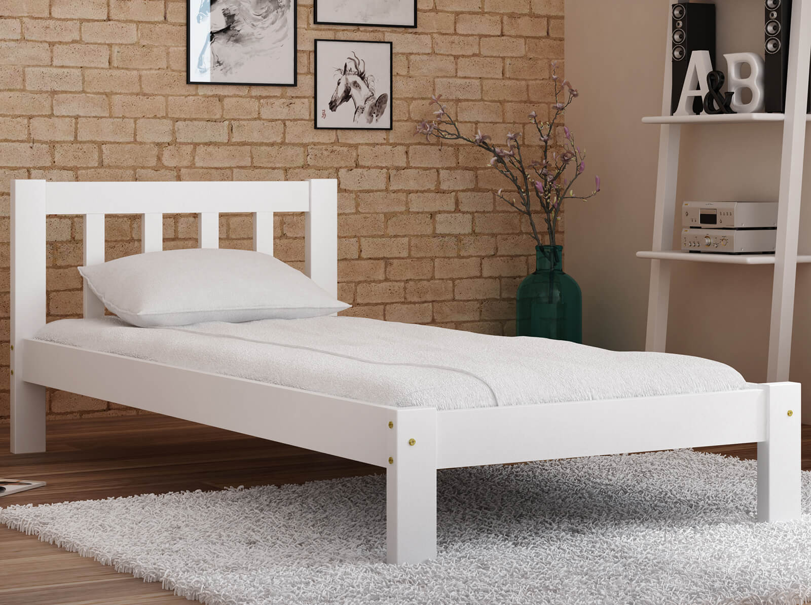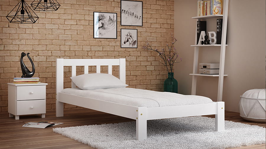 Pat din lemn 90x200 cu somieră Ofelia alb