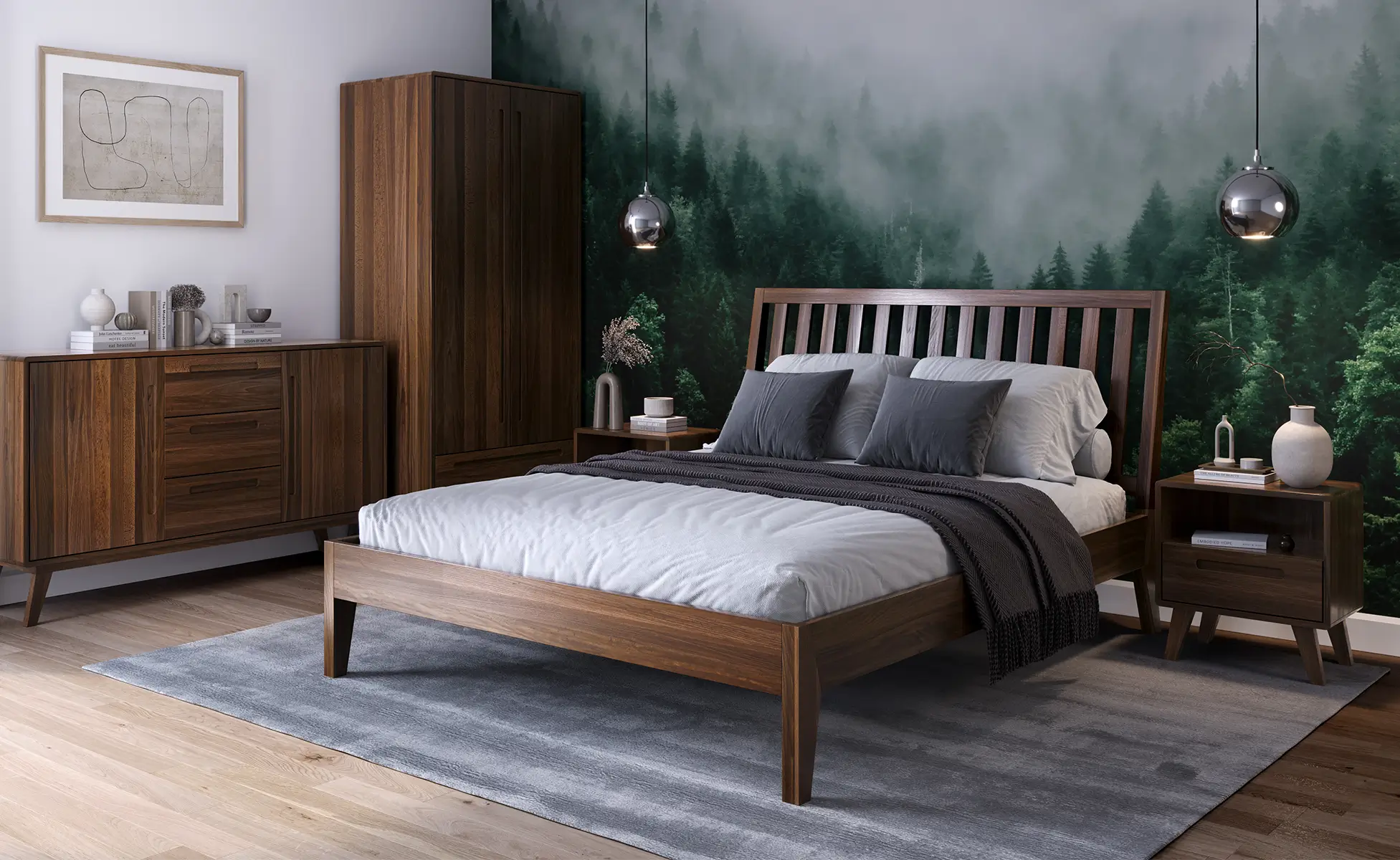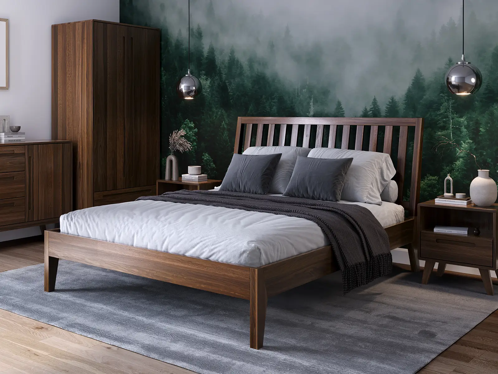 Patul Beskid 01 este disponibil in culoarea nucului, subliniind frumusetea lemnului in forma sa originala. Versiunea standard include un cadru de pat fără rame, dar pentru confort deplin și adaptare la preferințele individuale, oferim și versiuni disponibile cu diverse tipuri de rame din care să alegeți. Setul include si o banda de intarire si un suport suplimentar in mijlocul patului. Mobilier pentru auto-asamblare.