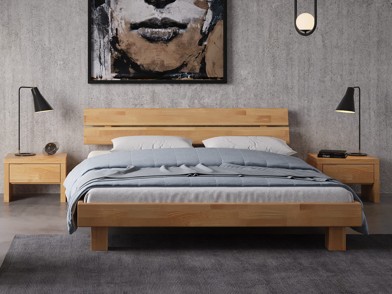 Vezi descrierea produsuluiPaturi din lemn realizate exclusiv din lemn masiv de fag, protejat cu o ceară de ulei care îi conferă strălucirea necesară, protejându-l în același timp de mici deteriorări mecanice și păstrând lemnul pentru mulți ani. Picioarele solide garantează rezistență și o stabilitate excelentă. Modelul Getafe din lemn masiv de fag va încânta prin naturalețea și eleganța sa atemporală. Designul patului permite un somn stabil și sigur, iar forma sa vă permite să vă odihniți într-un mediu cu o estetică ridicată. Obiectul vânzării este patul fără cadru și accesorii prezentate în fotografii. Vă recomandăm să alegeți rama disponibilă în configurator. Mobilierul este livrat în pachete pentru autoasamblare.