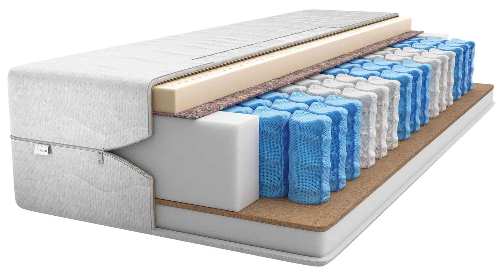 Stratul principal al saltelei este cu arcuri individuale, care datorită a celor 9 ZONE DE DURITATE asigură o potrivire perfectă la corpul utilizatorului. Fiecare arc este împachetat individual, permițând astfel o reacție independentă la sarcină. Salteaua este CU DOUĂ FEȚE. Posibilitatea de a utiliza două suprafețe îi extinde semnificativ durata de viață. Pe o parte, pe stratul superior, este spumă LATEX. Structura poroasă a latexului garantează o ventilație adecvată a aerului, minimizând problema transpirației excesive. Latexul este hipoalergenic în mod natural. Funcționează foarte bine indiferent de greutatea utilizatorului. Are proprietăți ortopedice. Pe cealaltă parte, direct sub stratul principal al saltelei, structura a fost rigidizată cu FIBRĂ DE NUCĂ DE COCOS. La suprafață a fost utilizată spumă poliuretanică. Spuma poliuretanică este HIPOALERGENICĂ și blochează dezvoltarea bacteriilor și microorganismelor. Datorită rezistenței crescute și elasticității ridicate, este extrem de durabilă.
