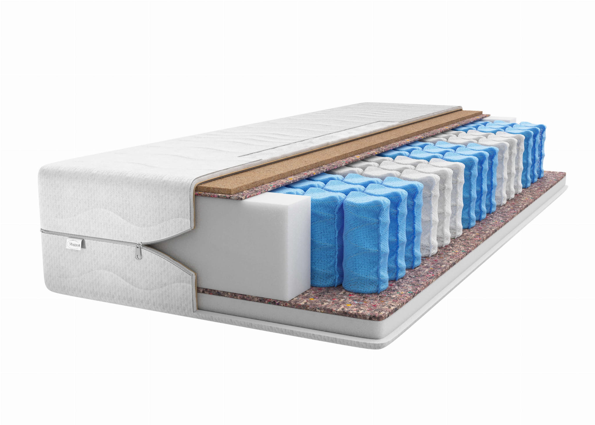 Stratul principal al saltelei este realizat din arcuri individuale, care datorită celor 9 ZONE DE DURITATE asigură o repartiție ortopedică a greutății corpului pe toata suprafața saltelei. Fiecare arc este împachetat individual, permițând astfel o reacție independentă la sarcină. Salteaua este cu DOUĂ FEȚE. Posibilitatea de a utiliza două suprafețe îi extinde semnificativ durata de viață. Structura utilizată în această saltea garantează o circulație adecvată a aerului. Structura a fost rigidizată cu FIBRĂ DE NUCĂ DE COCOSsporindu-i stabilitatea. Pe cealaltă parte a saltelei a fost utilizată spumă poliuretanică, oferind suport adecvat pe toată lungimea coloanei vertebrale. În interesul celei mai înalte calități și a satisfacției clienților, în fabricația saltelelor noastre folosim materiale HIPOALERGENICE. Materiile prime folosite de noi reduc posibilitatea apariției acarienilor, ceea ce le permite persoanelor alergice să doarmă liniștit.