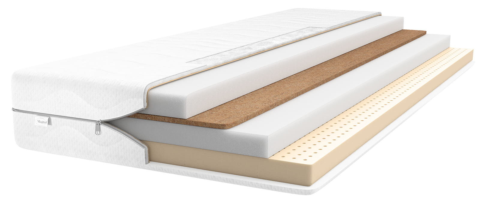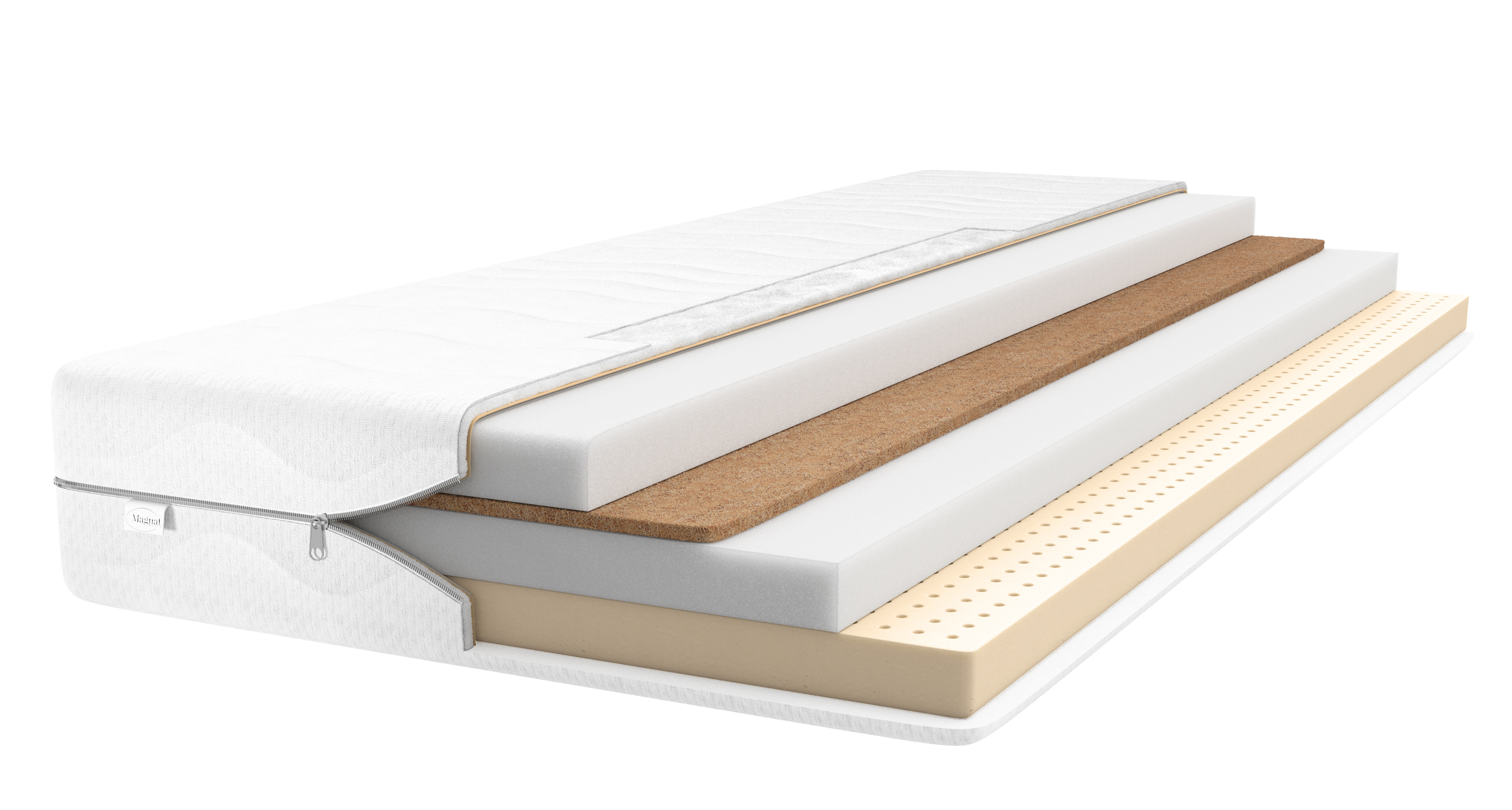 Stratul principal al saltelei este spumă poliuretanică. Datorită durității crescute și elasticității ridicate, am obținut o saltea extrem de durabilă și confortabilă în utilizarea de zi cu zi. Oferă suport adecvat coloanei vertebrale, în special pentru dezvoltarea corectă a copiilor. Spuma poliuretanică este împărțită în două părți, între ele fiind un strat de FIBRĂ DE NUCĂ DE COCOS. Fibra de nucă de cocos are un efect antifungic, îmbunătățește circulația aerului în interiorul saltelei și rigidizează întreaga sa structură. Pe o parte are un strat de spumă LATEX, care oferă suport ortopedic pentru coloana vertebrală. Structura poroasă din latex garantează o ventilație echilibrată a aerului. Salteaua este CU DOUĂ FEȚE. Posibilitatea de a utiliza două suprafețe îi prelungește semnificativ durata de viață. În interesul celei mai înalte calități și a satisfacției clienților, folosim materiale HIPOALERGENICE în fabricația saltelelor noastre. Materiile prime folosite de noi reduc posibilitatea apariției de acarieni, ceea ce le permite persoanelor alergice să doarmă bine.