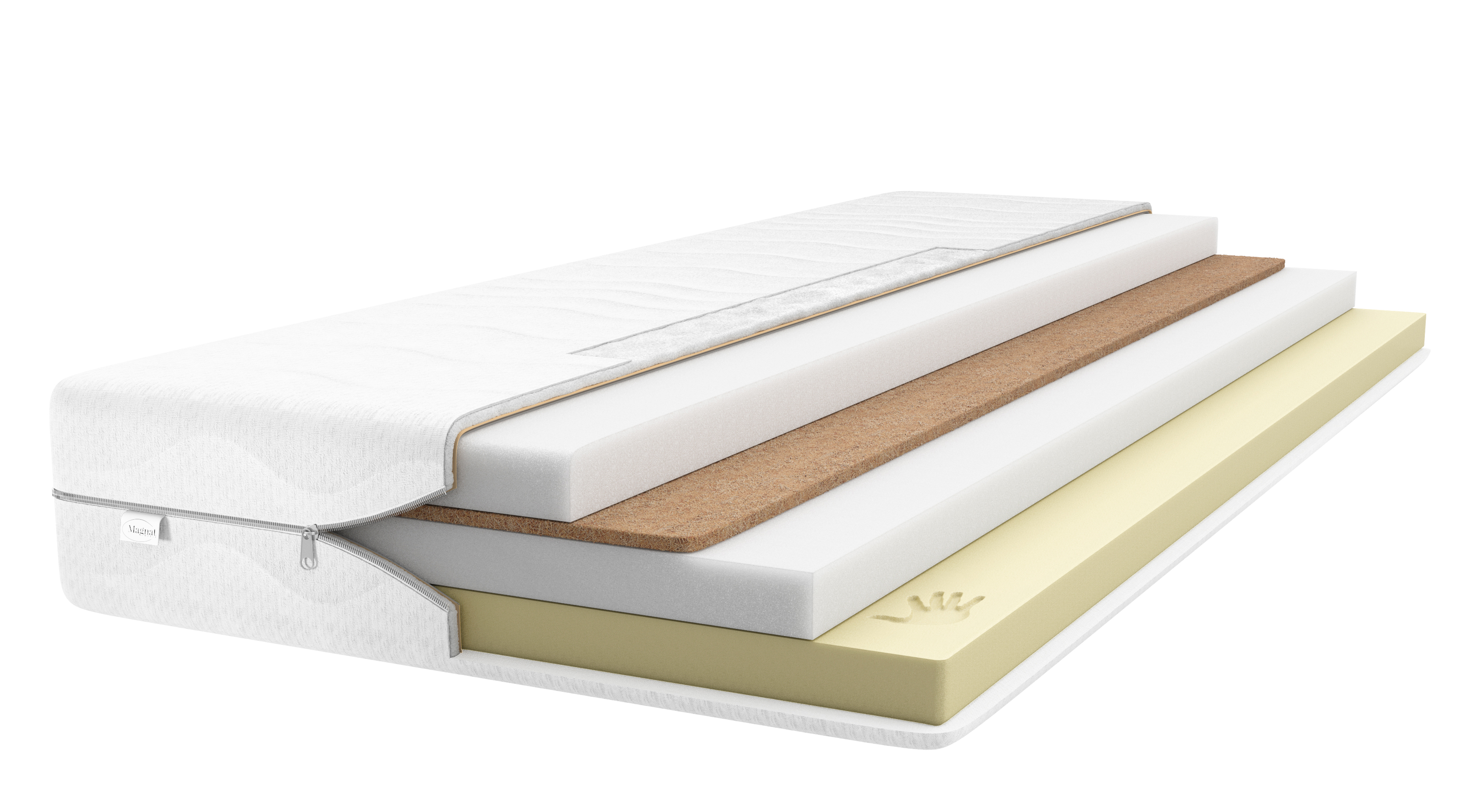 Stratul principal al saltelei este spumă poliuretanică. Datorită durității crescute și elasticității ridicate, am obținut o saltea extrem de durabilă și confortabilă în utilizarea de zi cu zi. Oferă suport adecvat coloanei vertebrale, în special pentru dezvoltarea corectă a copiilor. Spuma poliuretanică este împărțită în două părți, între ele fiind un strat de FIBRĂ DE NUCĂ DE COCOS. Fibra de nucă de cocos are un efect antifungic, îmbunătățește circulația aerului în interiorul saltelei și rigidizează întreaga sa structură. Pe o parte are un strat de spumă VISCO-MEMORIE termoelastică care reacționează la corp sub influența temperaturii și a presiunii. Spuma termoelastică se adaptează foarte bine la corp, asigurând un confort ridicat al somnului. Materialul Visco este recomandat în special în terapia împotriva escarelor. Salteaua este CU DOUĂ FEȚE. Posibilitatea de a utiliza două suprafețe îi prelungește semnificativ durata de viață. În interesul celei mai înalte calități și a satisfacției clienților, folosim materiale HIPOALERGENICE în fabricația saltelelor noastre. Materiile prime folosite de noi reduc posibilitatea apariției de acarieni, ceea ce le permite persoanelor alergice să doarmă bine.