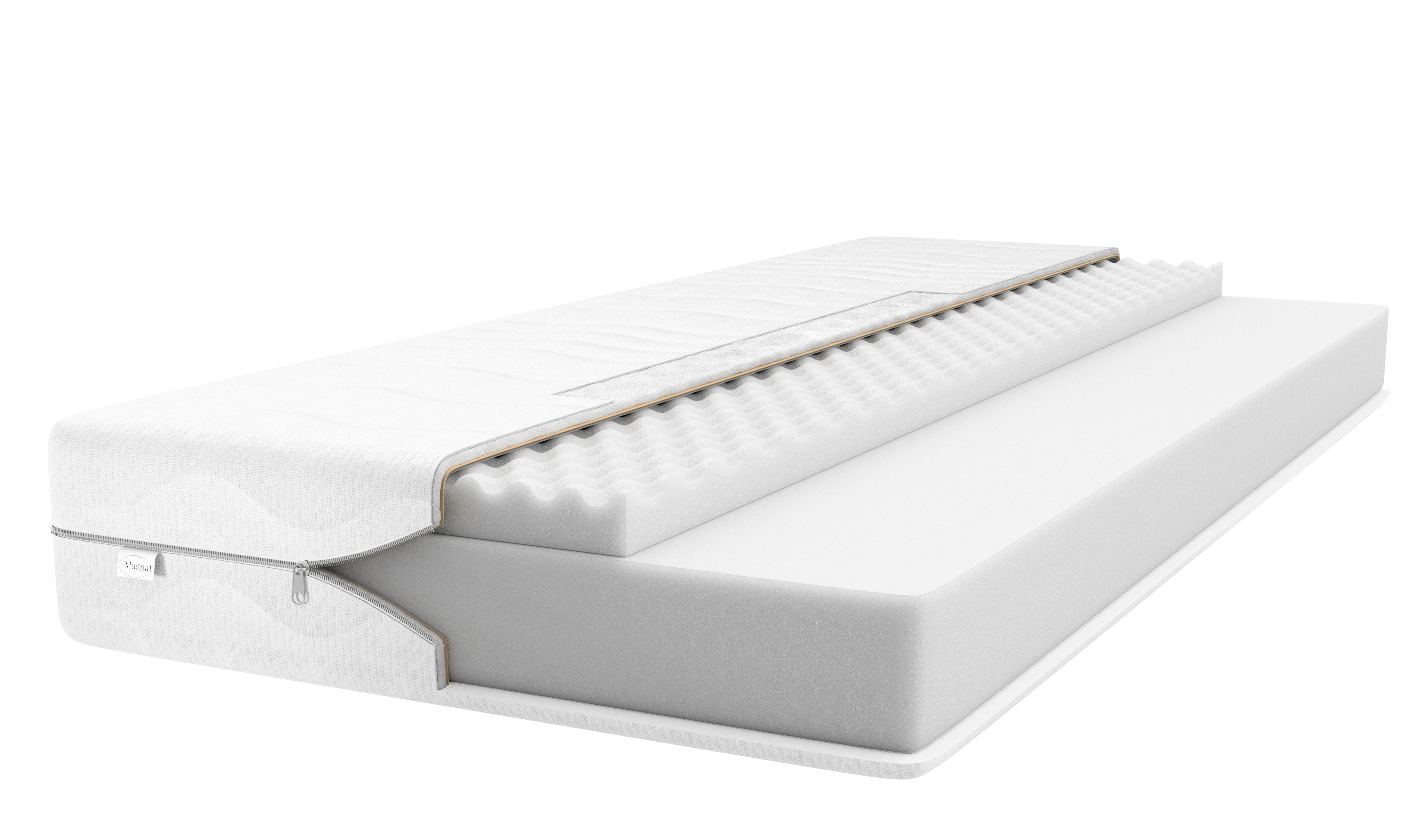 Stratul principal al saltelei este spumă poliuretanică. Datorită durității crescute și elasticității ridicate, am obținut o saltea extrem de durabilă și confortabilă în utilizarea de zi cu zi. Oferă suport adecvat coloanei vertebrale, în special pentru dezvoltarea corectă a copiilor. Pe o parte are un strat de spumă de tip MOLET cu o serie de proeminențe și adâncituri care se adaptează foarte bine la corp. Stratul de spumă cu proeminențe are proprietăți de micro-masaj ce îmbunătățește circulația sângelui. Salteaua este CU DOUĂ FEȚE. Posibilitatea de a utiliza două suprafețe îi prelungește semnificativ durata de viață. În interesul celei mai înalte calități și a satisfacției clienților, folosim materiale HIPOALERGENICE în fabricația saltelelor noastre. Materiile prime folosite de noi reduc posibilitatea apariției de acarieni, ceea ce le permite persoanelor alergice să doarmă bine.