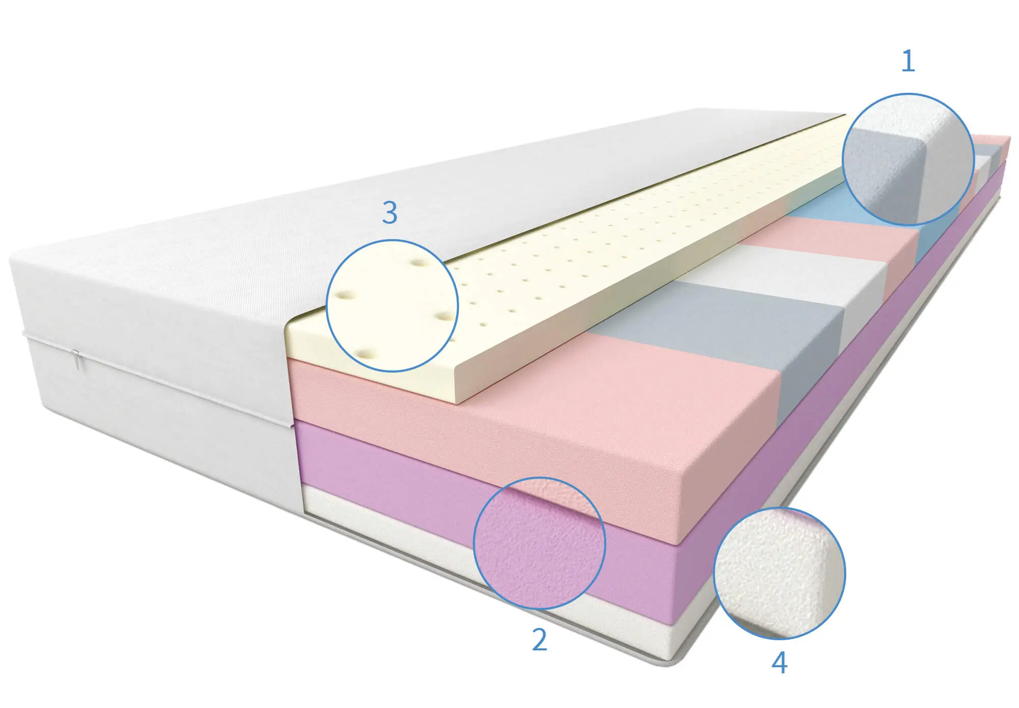 Zonele de fermitate oferă diferite grade de sprijin pentru diferite părți ale corpului, asigurând confort maxim în timpul somnului. Fiecare zonă este proiectată cu precizie pentru a se adapta la curbele naturale ale corpului, susținând un somn sănătos și odihnă.
