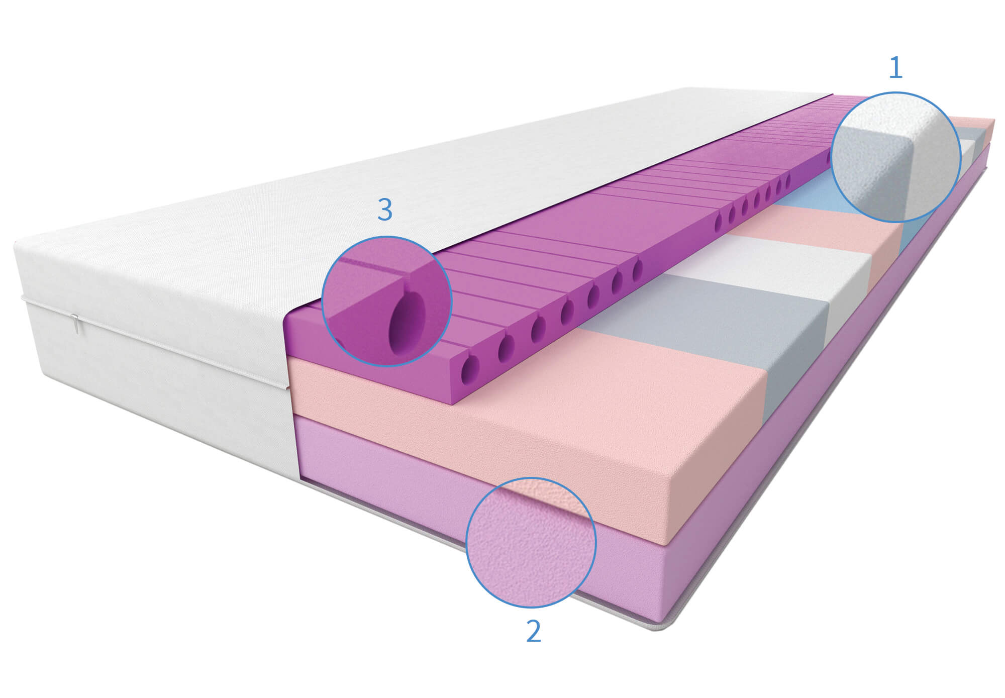 (2)Spuma de stabilizare este un element cheie al construcției acestei saltele, garantând stabilitatea și durabilitatea acesteia la cel mai înalt nivel. Stratul activ stabilizator, realizat din spuma cu duritate crescuta, este o solutie inovatoare care asigura echilibrul optim al intregii structuri.