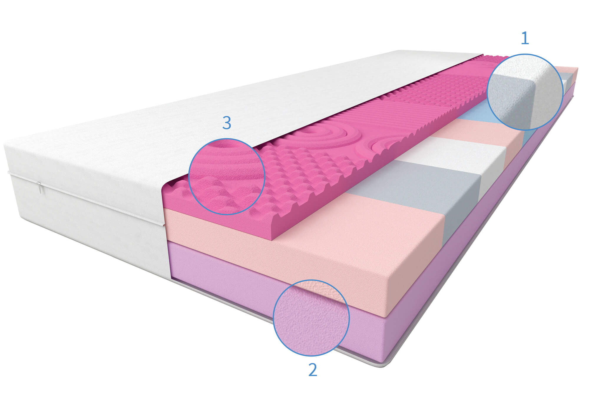 (1) Spuma exclusivă cu 9 zone asigură o ajustare precisă la părțile individuale ale corpului datorită diferitelor densități. Datorită acestui fapt, fiecare parte a corpului primește sprijin și confort adecvat, ceea ce contribuie la o mai bună odihnă și regenerare.