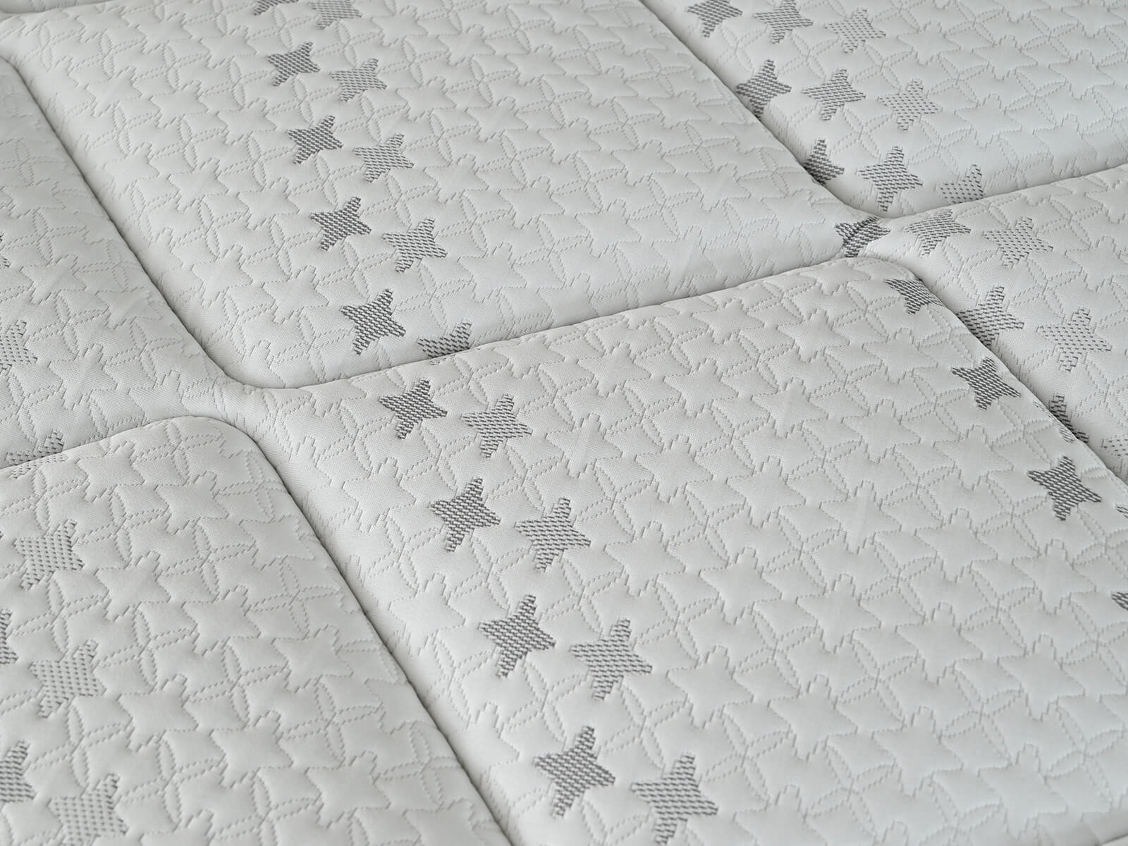 Țesătură cu cărbune de bambus – suprafață de dormit moale și respirabilă, sprijină neutralizarea mirosurilor și menținerea unui microclimat proaspăt în pat.